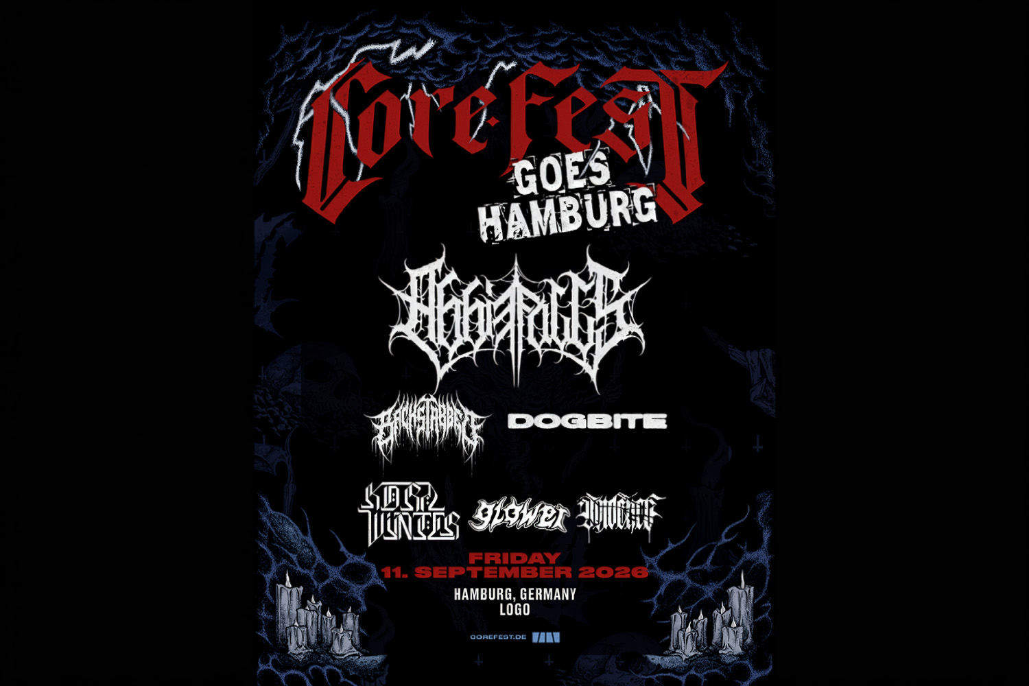 Am 11. September macht das Core Fest erstmals Halt in Hamburg und bringt eine kompakte, aber intensive Ausgabe ins Logo. Unter dem Titel „Core Fest goes Hamburg“ erwartet euch ein Abend voller Breakdowns und purer Energie zwischen Metalcore, Hardcore und angrenzenden Genres. Mit dabei sind Abbie Falls, Backstabbed, DOGBITE, KORA WINTER, glower und Voidence – sechs Bands, die für rohe Energie, druckvolle Liveshows und kompromisslosen Sound stehen. Jede für sich bringt eine eigene Note ins Line-up und sorgt gemeinsam für ein vielseitiges, aber stimmiges Gesamtbild.